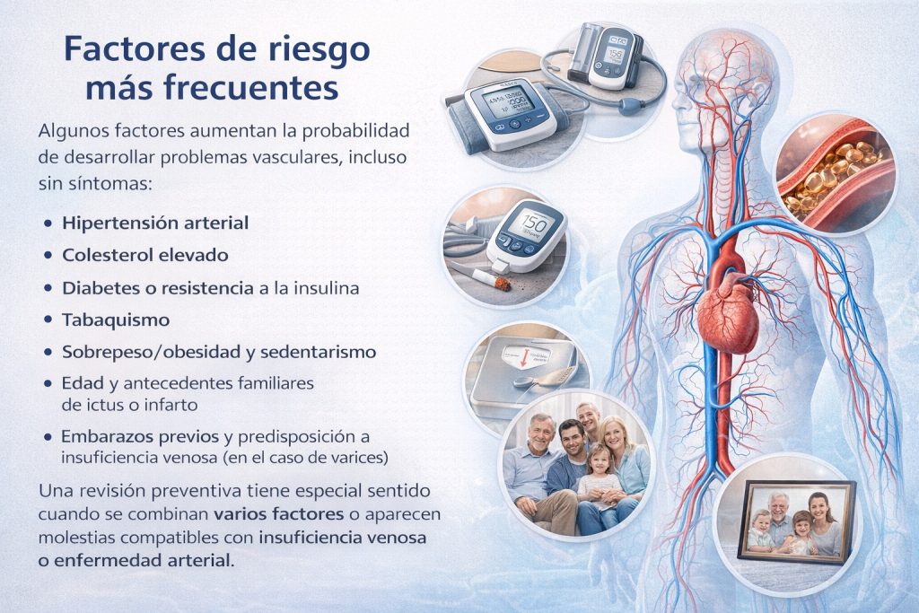 Una revisión preventiva tiene especial sentido cuando se combinan varios factores o aparecen molestias compatibles con insuficiencia venosa o enfermedad arterial.